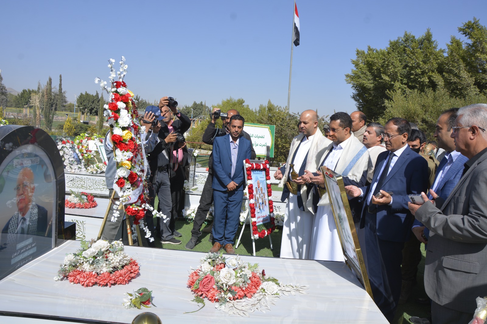 ووضع الوزير المهدي ونائبه المكني ووكيلا الوزارة للشؤون المالية والإدارية أحمد المتوكل، والفنية المهندس طه زبارة، ووكيل الوزارة المساعد للشؤون الفنية المهندس عبدالرحمن أبو طالب، إكليلًا من الزهور على ضريح الشهيد الرئيس الصماد ورفاقه، وتم قراءة الفاتحة على أرواحهم.
